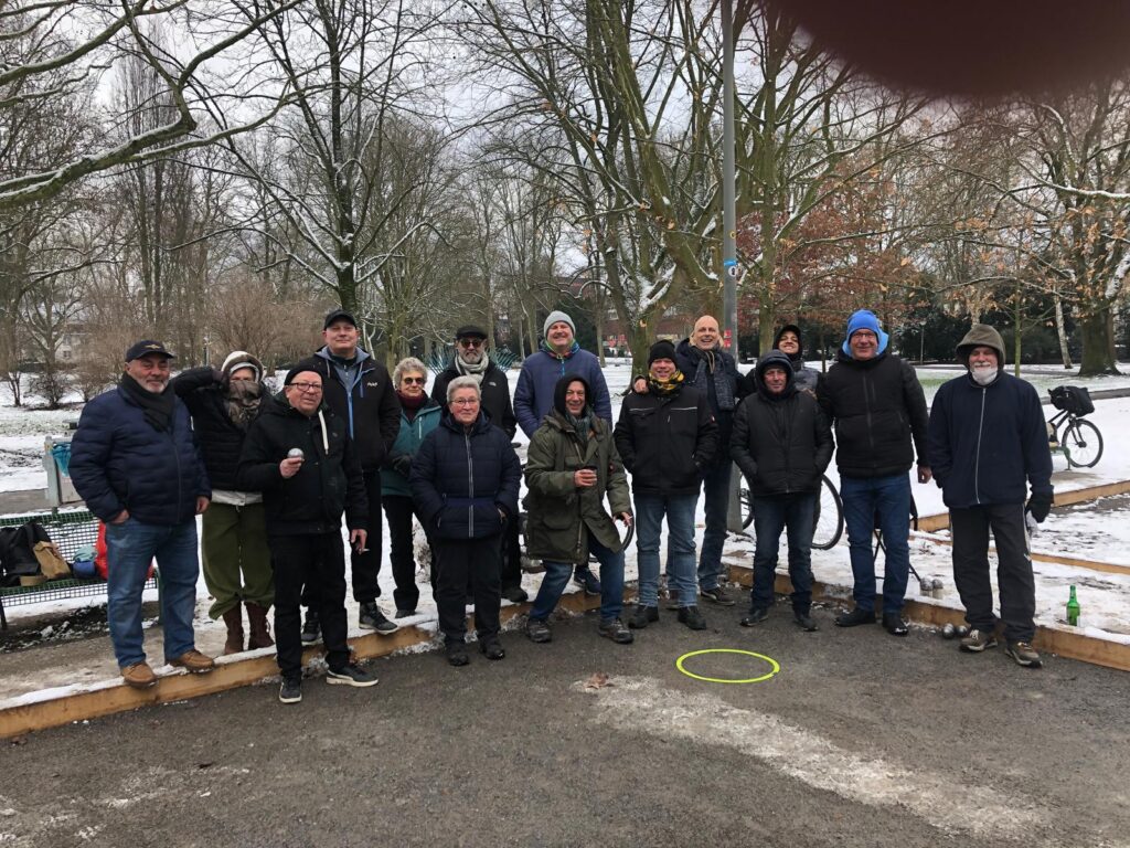 Bei Temperaturen um die 0 Grad fanden sich heute 16 tapfere Bouletten im Westpark zum Anboulen und Start der neuen Ranglistenturniere ein. Natürlich musste Schnee geschippt werden, damit die Kugeln auch schön rollten. Es war ein gemütlicher und ruhiger Start in das neue Boulejahr 2026!